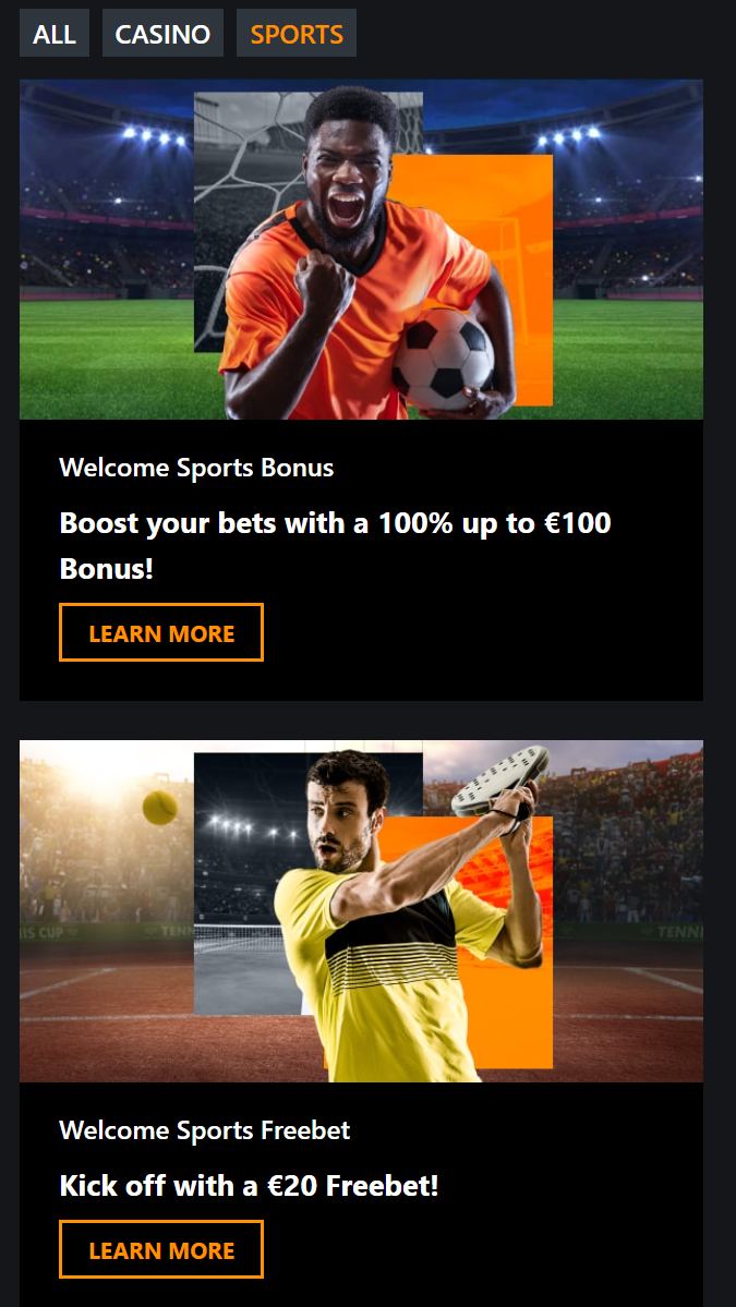 VÀlj din bonus: Under insÀttningsprocessen vÀljer du vÀlkomstbonusen för sportspel frÄn de tillgÀngliga alternativen.