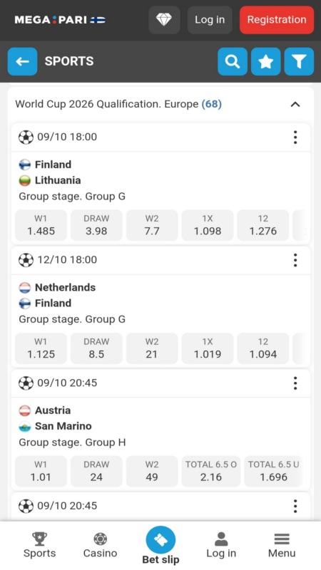 Megapari är en global sportsbook med flera licenser, sidan har vuxit snabbt i antal marknader och appen har stöd för många språk. De erbjuder ett stort antal marknader för VM 2026 och kör regelbundet turneringskampanjer. Detta kan vara den bästa fotbolls VM betting appen för dig som uppskattar detaljerade marknader och moderna funktioner.